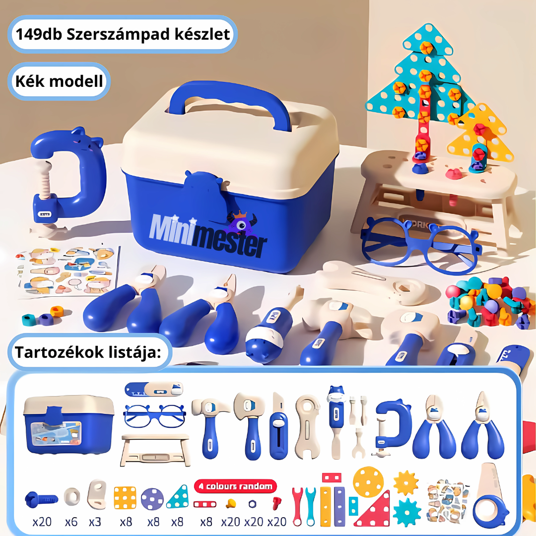 A MiniMester nemcsak szórakoztatja a gyerekeket, hanem fejleszti kézügyességüket, kreativitásukat és problémamegoldó gondolkodásukat. Ez az intelligens barkácsjáték biztonságosan tanítja meg őket építeni, alkotni és játszva tanulni.